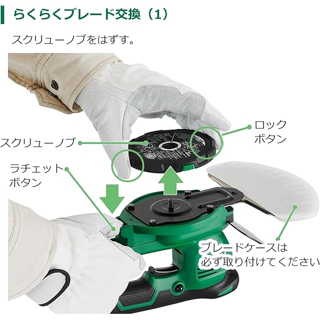 工具不要でブレードが交換できる「らくらくブレード交換機構」