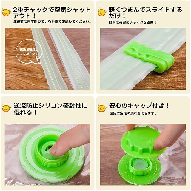 【布団の守り】この圧縮袋は防水性と密封性に優れていますので、布団や衣服などを湿気やほこりからお守り、また、ダニやカビなどの侵入を防ぎ、常に清潔に保管して頂けます。