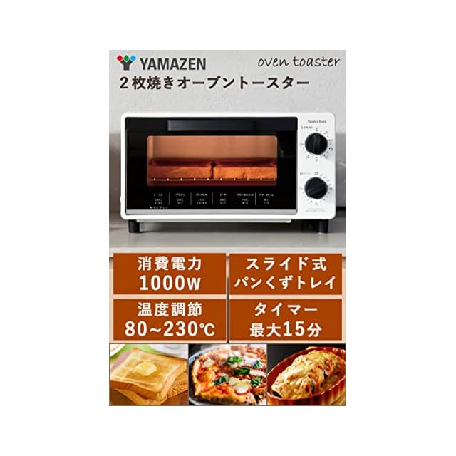 [山善] トースター オーブントースター 一人暮らし 二人暮らし トースト 2枚焼き タイマー15分 温度調節機能付き 1000W トレー付き ホワイト YTS-C101(W)