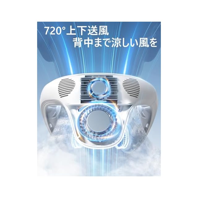 【720°全方位送風|どこでも爽快】三つのタービンファン+一体式風道で、首元全体に360°+上下360°の合計720°送風。屋外作業、運動、休憩中も涼しい風がしっかり届きます。