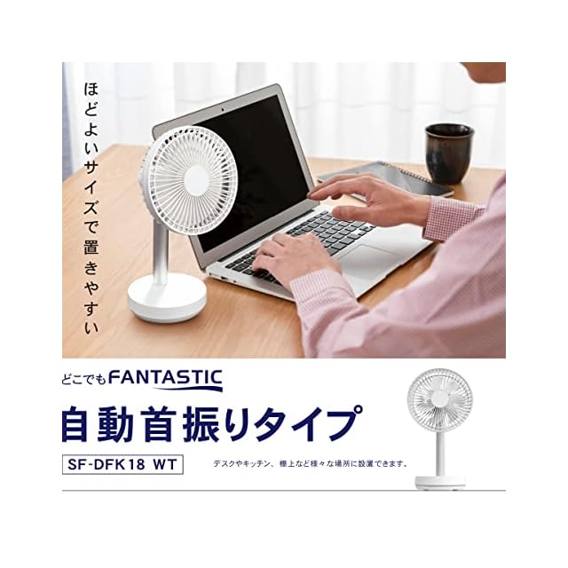 トップランド 卓上扇風機 デスクファン どこでもFAN 自動首振り角度調節 3電源対応 (AC/USB/別売乾電池) 省エネ設計 切タイマー搭載 ホワイト SF-DFK18WT