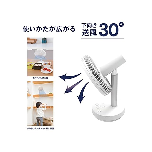 【自動首繰り機能】左右に約80度自動で首振りできて、上下は手動で角度調整可能なので、お好みの角度で涼しめます。(上:約45度、下:約30度)