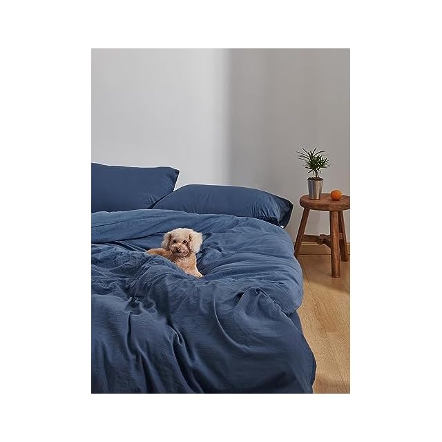 クモリ(Kumori) 寝具カバーセット 布団カバーセット 洗いざらし シワ加工 水洗い やわらか (掛け布団カバー ボックスシーツ 枕カバー)吸水速乾 丸洗いOK 肌に優しい 洗える 無地 シンプル オールシーズン(セミダブル・4点セット ネイビー)