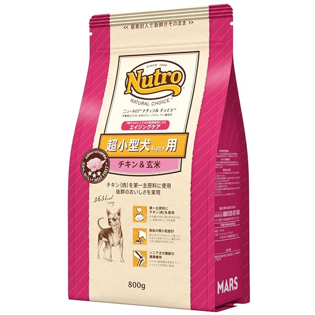 Nutro ナチュラルチョイス シニア犬用 超小型犬4kg以下用 チキン&玄米 800g ドライフード 極小粒 総合栄養食 エイジングケア ドッグフード 犬 お試し 自然素材 香料・着色料 無添加 ニュートロ