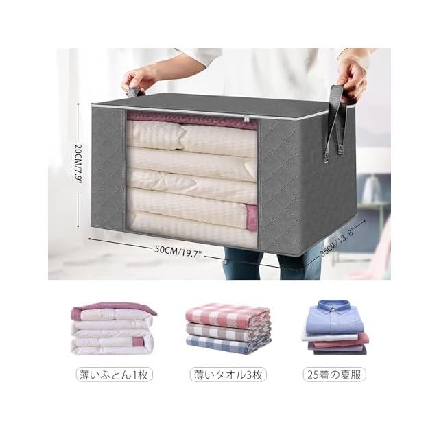 衣類収納ケース 収納ボックス 毛布 通気性 異臭なし 折りたたみ 不織布 grey