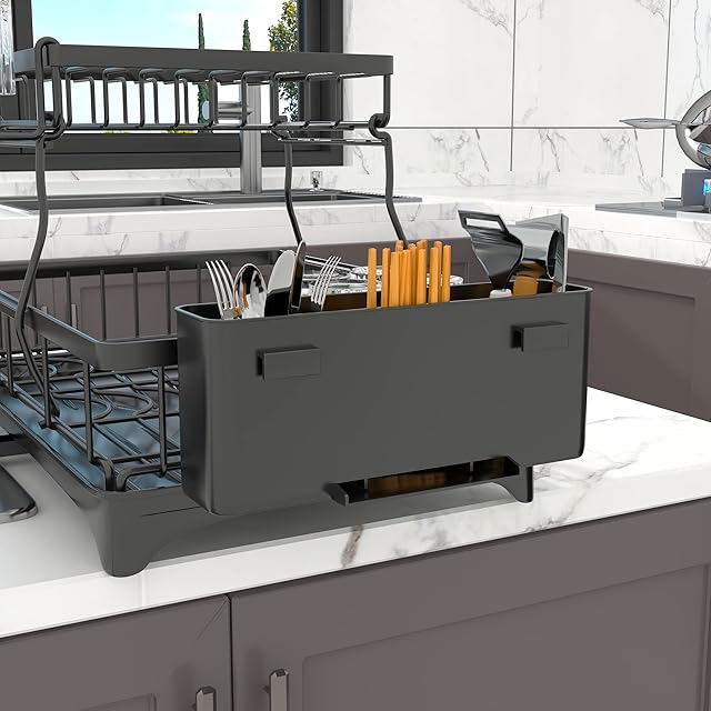 SVOHZAV 水切りラック 横置き 水切りかご 錆びない 2段式 自動排水 大容量 ディッシュラック キッチン収納 水が流れる 食器乾燥 皿立て 箸収納 包丁スタンド まな板立て 組み立て簡単 (Bタイプ(31*44*33cm), ブラック)