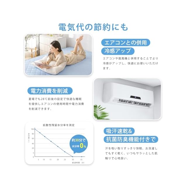 【パッド一体型設計!Q-MAX0.52冷感】敷きパッドとボックスシーツ両方の機能が揃えて、表面はナイロン100%を採用して、普通のボックスシーツよりも柔らかく快適な寝心地を提供してくれます。寝返りのたびに冷たさが持続。体が触れていない部分は温度が下がって冷感が戻るので寝返りのたびにひんやりして一晩中快適になります