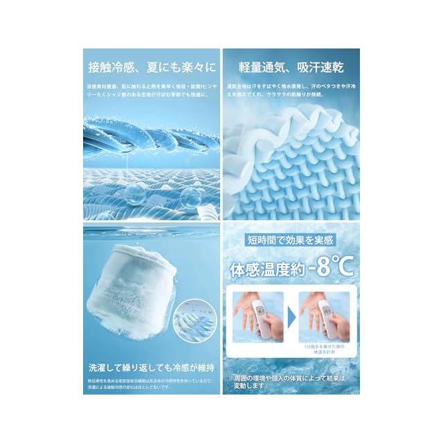【吸湿速乾·抗菌防臭加工】速乾生地は汗をすばやく吸水蒸発し、汗のベタつきや汗冷えを抑えてくれ、サラサラの肌触りが持続。抗菌防臭加工を採用して強力な抑制効果があり、細菌を減少させる効果も期待。清潔に使用できます。