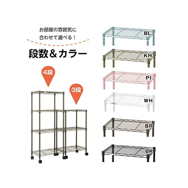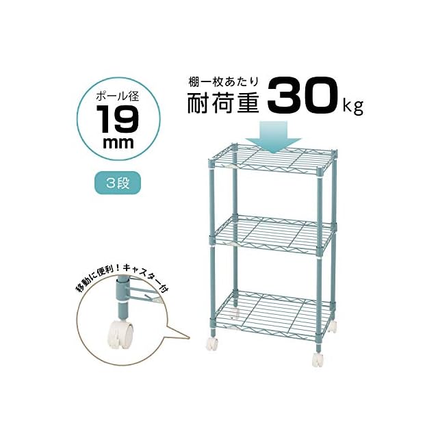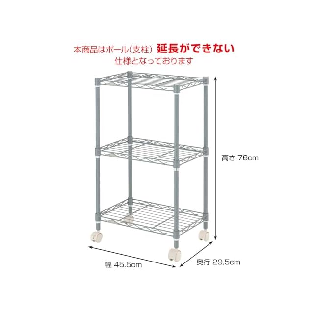 材質:スチールシェルフ(棚板)・ポール:スチール(粉体塗装) ナイロンキャスター:ナイロン樹脂 スリーブ:ABS樹脂