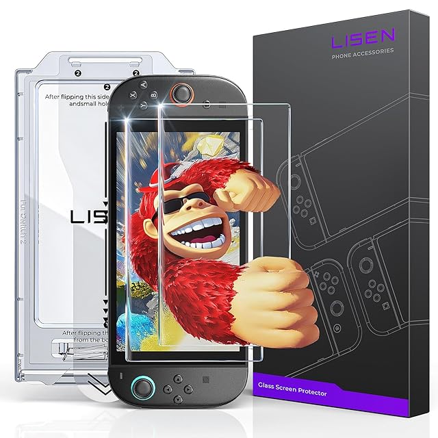 LISEN 対応 switch 2 保護フィルム【3枚入り】全面保護 強化ガラス 対応 スイッチ2 保護フィルム・一発貼り・自動貼り付けキット付き |対応 switch2 ガラスフィルム・気泡ゼロ・指紋防止・高透過率・撥油性・超耐久・高光沢