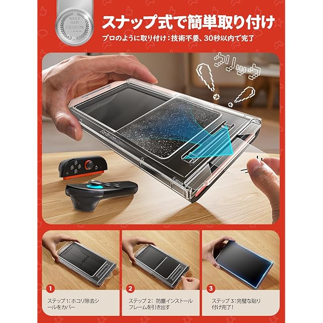 【対応機種Switch 2専用】本製品は2025年発売予定のSwitch 2専用に開発され、画面の端から端までぴったりと保護します。注意:画面に元々貼られている保護フィルムは剥がさないでください。既存のフィルムの上に直接、この強化ガラス保護フィルムを貼っても、機能や性能に影響はありません。(24時間以内にお客様に満足できる返事を差し上げます。商品の問題に対しては、無料で交換または 全額返金 いたしますので、ご安心して弊社の製品をお買い求めください)。
