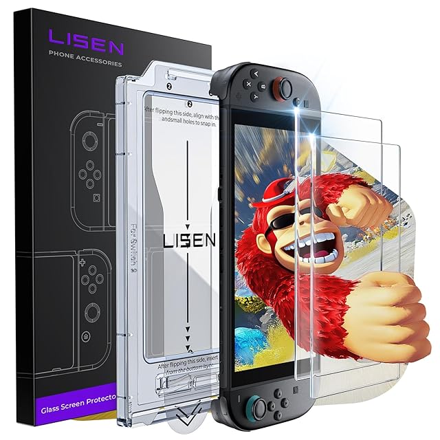 LISEN 対応 switch 2 保護フィルム【1枚入り】全面保護 強化ガラス 対応 スイッチ2 保護フィルム・一発貼り・自動貼り付けキット付き |対応 switch2 ガラスフィルム・気泡ゼロ・指紋防止・高透過率・撥油性・超耐久・高光沢