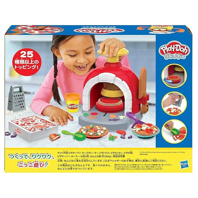 ハズブロ(Hasbro)プレイドー、キッチンクリエーション、ピザオーブンプレイセット、おままごと、ごっこ遊び、子供向け、3才以上、ねんど、アクセサリー8個付、知育玩具 F4373 正規品