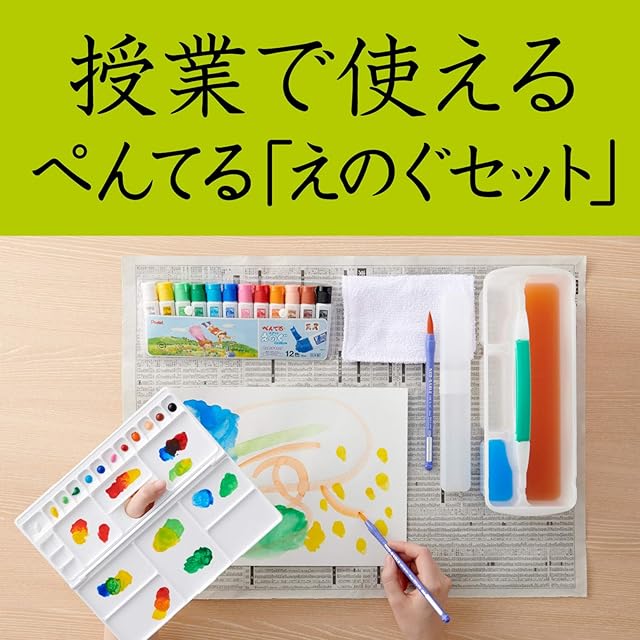 【セット内容】12色絵の具・丸筆(6号・14号)・筆筒・ダブルパレット