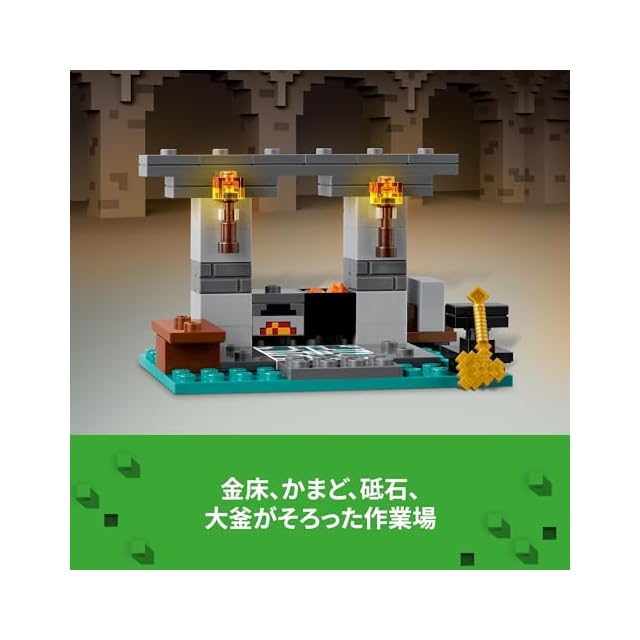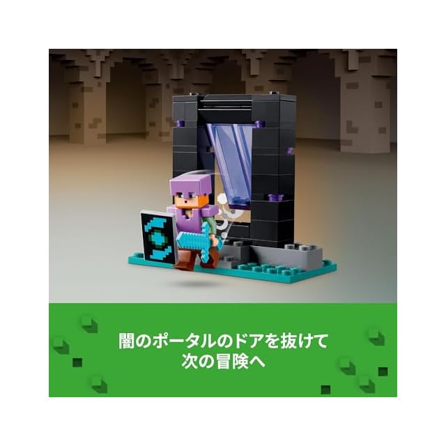 プレイセットを組み合わせて世界を広げよう – レゴマインクラフト 武器庫セット単独で遊べるのはもちろん、レゴマインクラフト シリーズの別のセットと組み合わせても楽しめます。特に、ネザーポータルの戦い(21255)との相性は抜群(各セット別売)