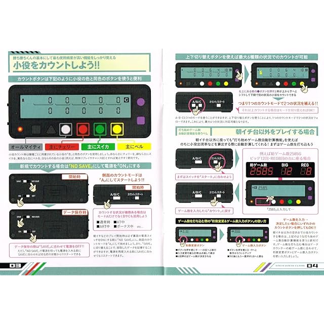 ●大きくて見やすい液晶表示。●Wディスプレイ。●リンク機能。●LED機能。●押しっぱなしのいらないON/OFF式合算出現率表示。