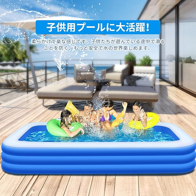 【安全なPVC素材】子供に安全なPVC素材を使用しており、フタル酸を含まず、赤ちゃんがなめても安心です。業界水準の1.5倍の厚みで、破れや裂けに強く、水漏れや空気漏れを防ぎ、安心感があります。お子様が思いっきり遊んでも安全な素材で、家族みんなで安心して楽しめます。