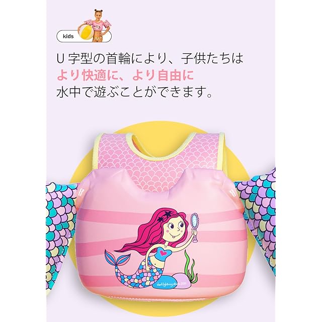 米国沿岸警備隊認定が 子供用ライフジャケット幼児 キッズスイムベスト 浮き輪 腕 アームリング 子供 赤ちゃん 2~7歳 ベビー 水泳練習 水遊び 海水浴 便利 軽量 (マーメイド)
