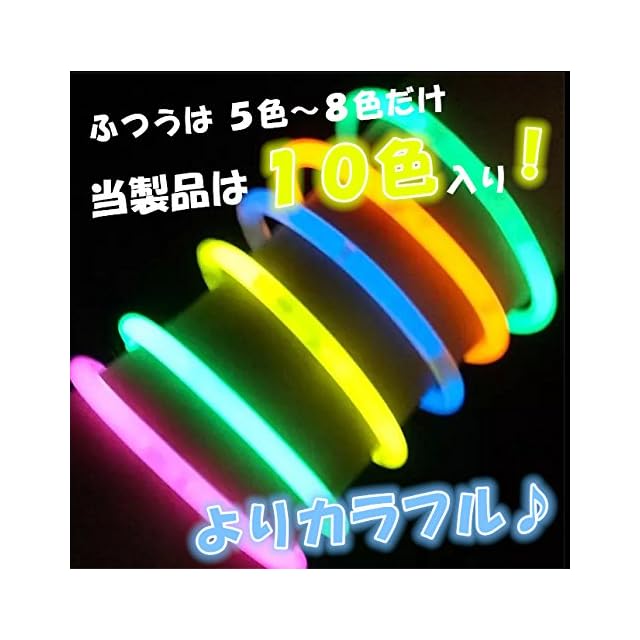 【仕様♪】 〇カラー: 10色入り(青、緑、ピンク、赤、黄、オレンジ、紺色、紫、アクア、水色) 〇2つ、3つとつなげてリングにして遊べる「ジョイント付き」。 〇点灯時間:夏期3~8時間 冬期:5~8時間 〇一本の長さ:約20cm