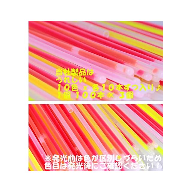 【備考】カラーについて、発光前は色が区別しづらく、同じような色に見えることがありますので、発光後に色目はご確認ください。また、入り数は機械計量のため、稀に本数が少し不足することがございます。そのためきっちりの数量をお求めいただくのではなく、少し余裕をもった数量にてお買い求めくださいませ。もちろん何か問題などある場合は、当店舗まで何なりとご連絡ください。