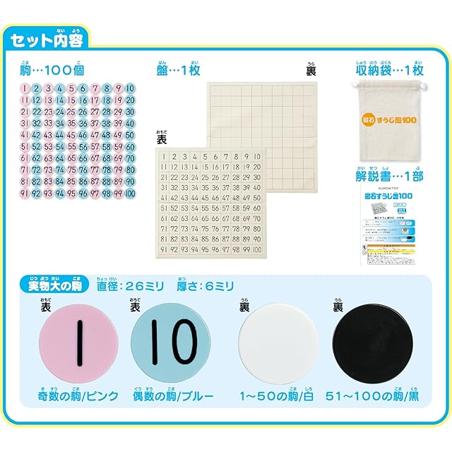 【セット内容】コマ:100個、盤:1枚、収納袋:1枚、解説書:1部