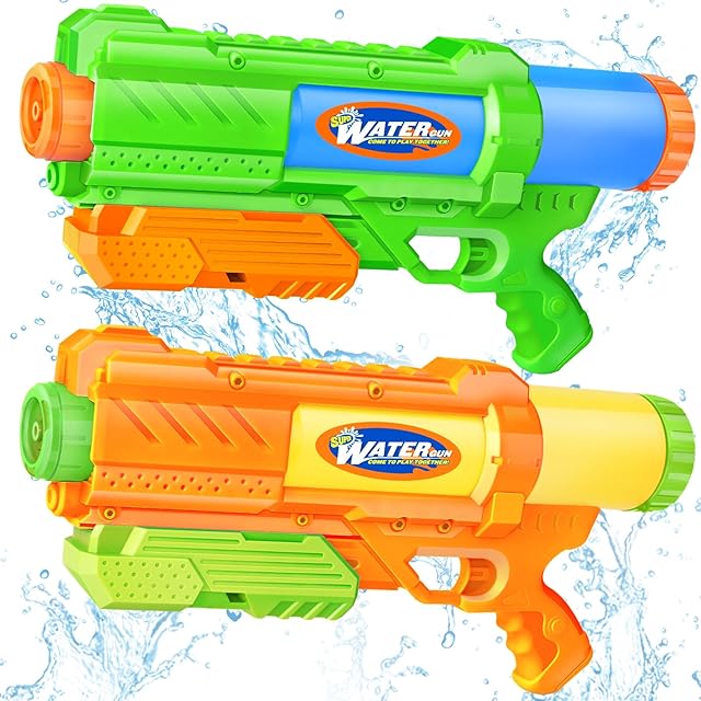 水鉄砲 2丁セット 最大飛距離10m 加圧式 強力 連射OK ライフル 1100ml大容量タンク 水合戦 水掛合 夏 海 川 プール 水遊びおもちゃ オレンジ&グリーン
