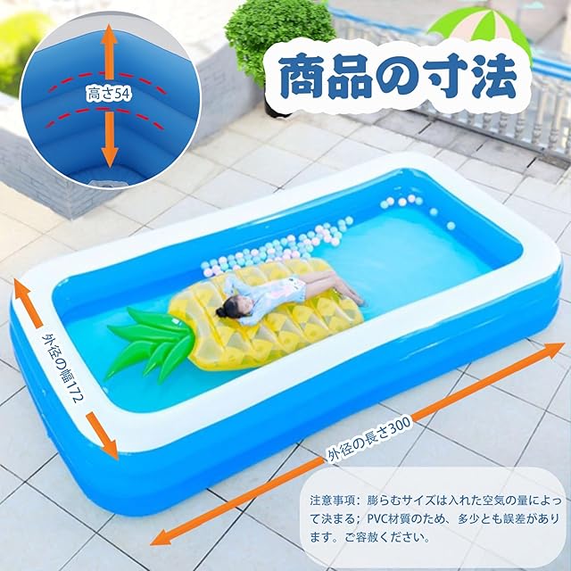 【大容量家庭用プール】:3サイズのビニールプールはご用意しており、ご自由に選択できます。サイズ: M(210x140x60cm,1〜4人を収容でき)、サイズ: L(260X165X54cm,1〜6人を収容でき)、サイズ: XL(300X172X54cm,1〜8人を収容でき)大人でもプールの中で快適に手足を伸ばすことができます。暑い夏は、子どもと水遊びをして夏を楽しく過ごしましょう。