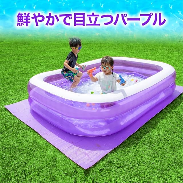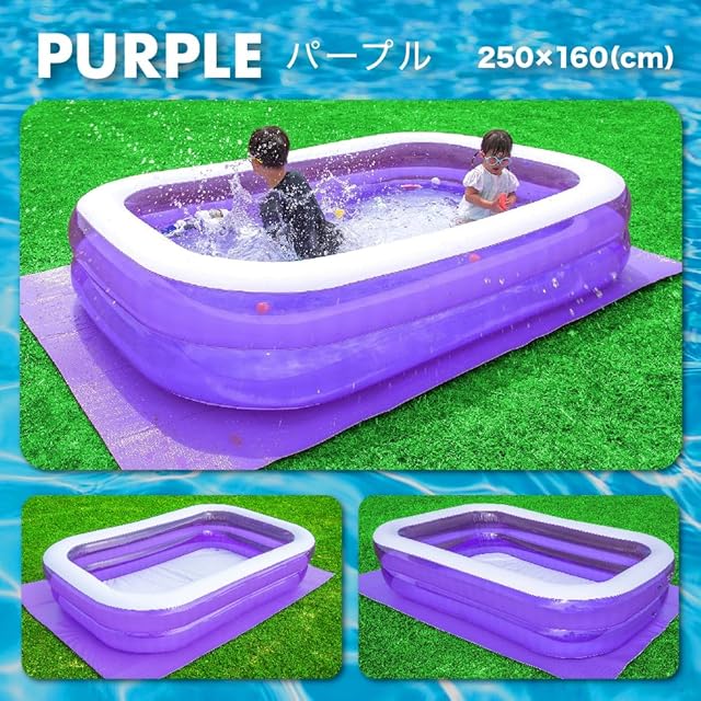 プール マット 厚手 【子供たちを笑顔にするプール】 大きい 300㎝用 250㎝用 200㎝用 150㎝用 大型 家庭用 シート カバー (パープル, 270cm×185cm×3.5mm)