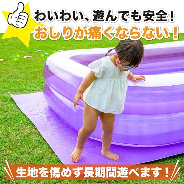 【 極厚プールマット 】プールマットは数多く御座いますが、弊社のプールマットはここが違います!1.水をはじくからお手入れ楽ラク! プールマットは水をはじく素材なので、マットに水が染み込まず、片付けも簡単にできます。2.プールを保護して傷つけない ビニールプールの下に敷くことで底が痛くなりません。プールの保護にもなるので、お子様も思い切り遊ぶことができます。3.マットは厚みがあるから安心 マットは緩衝性に優れた素材を使用しているため、固い地面や砂利の上でもプールを保護してくれます。キャンプなどのレジャーシートや、ストレッチなどのトレーニングシートとしてもお使いいただけます。