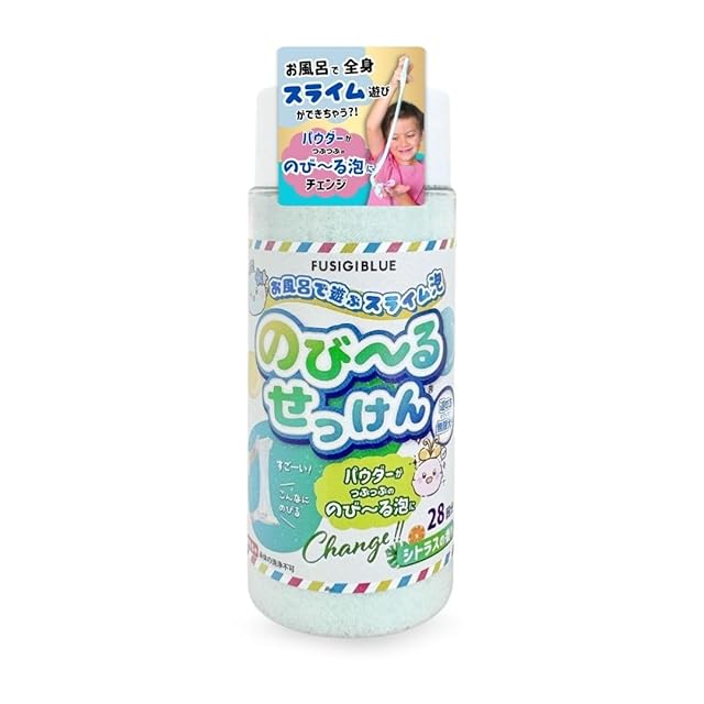 お風呂で楽しく遊びながら、脳と身体の発達を促進する、新発想の知育玩具「子どもの才能 のびーるせっけん」 ・未体験!パウダーに水を加えて混ぜると、スライムのように、びよーんとのびる、楽しい泡にチェンジ! ・のびーる泡は、大人も子どもも夢中になる、ザラザラ・つぶつぶ・もちもち感触 ・のびーる泡はとても強力。水を加えすぎなければ、1時間以上連続して遊ぶことができます ・遊ぶだけで脳が育つ!指先は第2の脳。楽しく遊ぶだけで、創造性・集中力・忍耐力・応用力などの知能が高まります ・大人も驚きの本格的な良い香り。リゾートホテルのようなシトラスと、ジューシーなピーチの2ラインナップ ・のびーるせっけんのオリジナルの技で遊べる!ロープのように回したり、アイスや風船など、色んな形が作れます。 2人で伸ばして、どこまでのびるかチャレンジするのも楽しい♪ ・一般的なスライムに含まれるホウ砂を含まず、食品原料と石鹸成分だけで構成。安心安全にこだわりました。