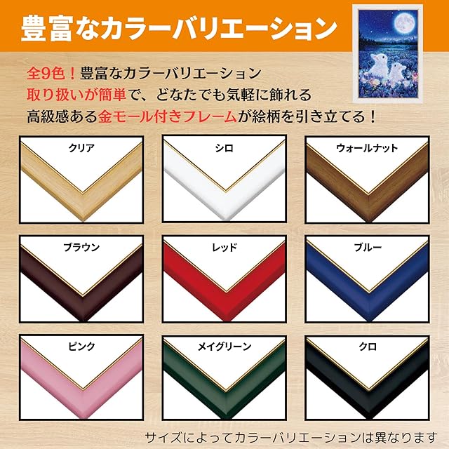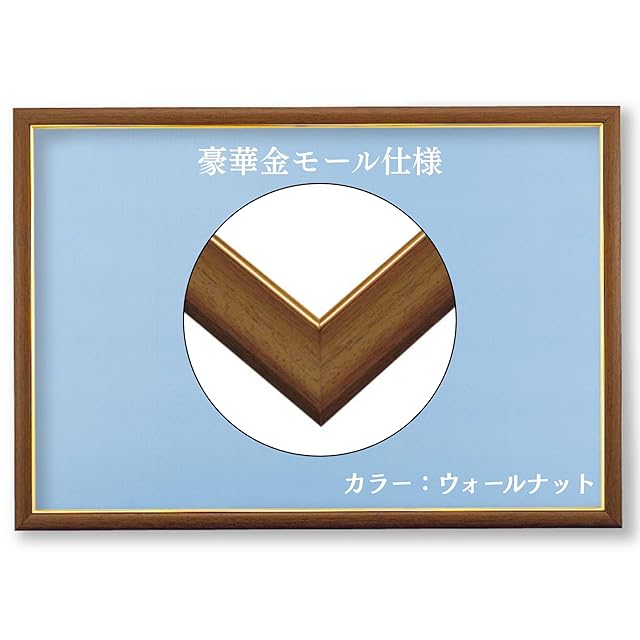 ビバリー 【日本製】 【壁かけひも付】 木製ゴールドモール付パズルフレーム 49x72cm(パネル№10-D) ウォールナット(茶色) 【UVカット仕様/工具不要】 ゴールドモール木製パネル ジグソーパズルフレーム 額縁 MP101L