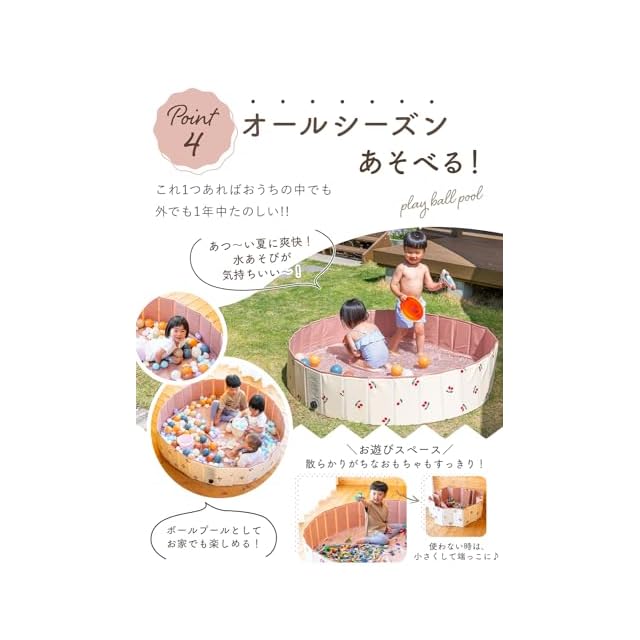 【オールシーズン遊べる】ケラッタのプールは夏だけじゃなく、年中通して楽しめます。気温の高い夏はお庭で爽快水遊び!オフシーズンは室内でボールプールにしたり、散らかりがちなブロックや小さなおもちゃで遊ぶプレイスペースとしてのご使用がおすすめ♪