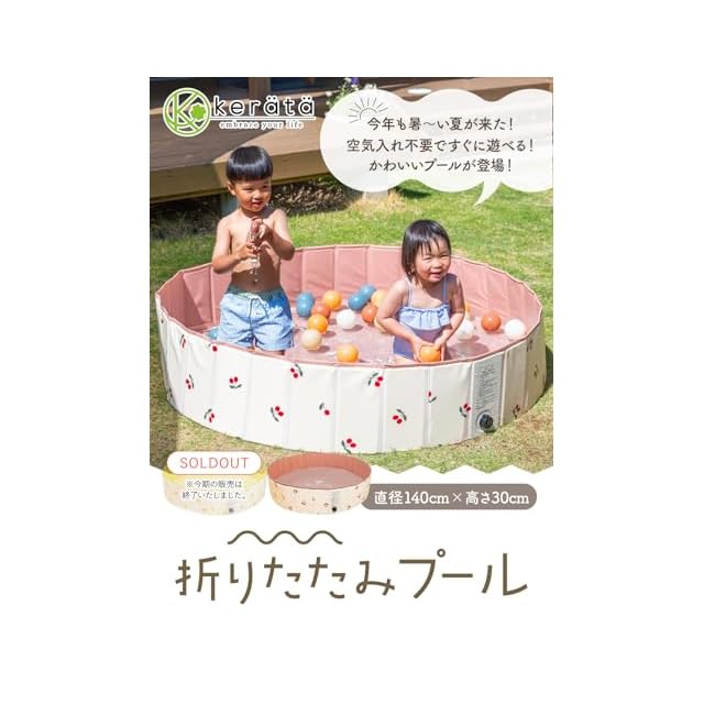 (ケラッタ) イブル プール 折りたたみ 空気入れ不要 【10秒でパパっと組み立て】 140×30cm 子供 赤ちゃん 水遊び (チェリー)
