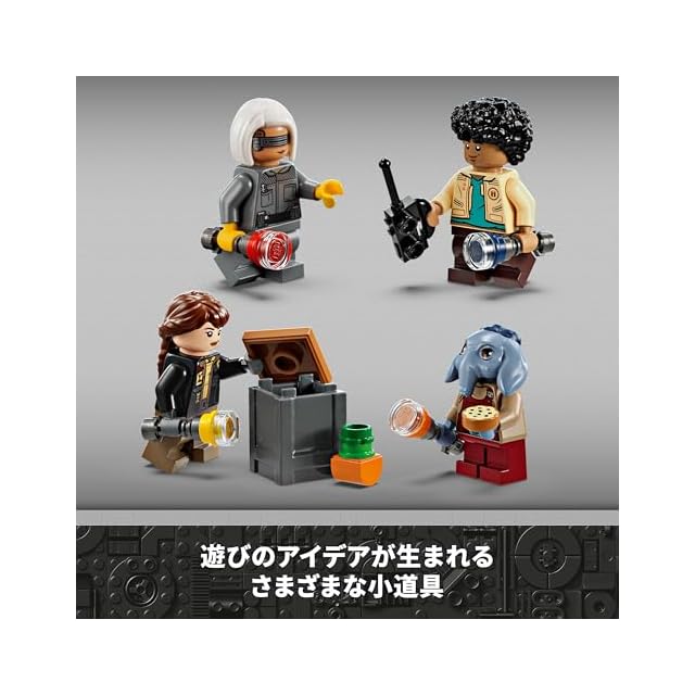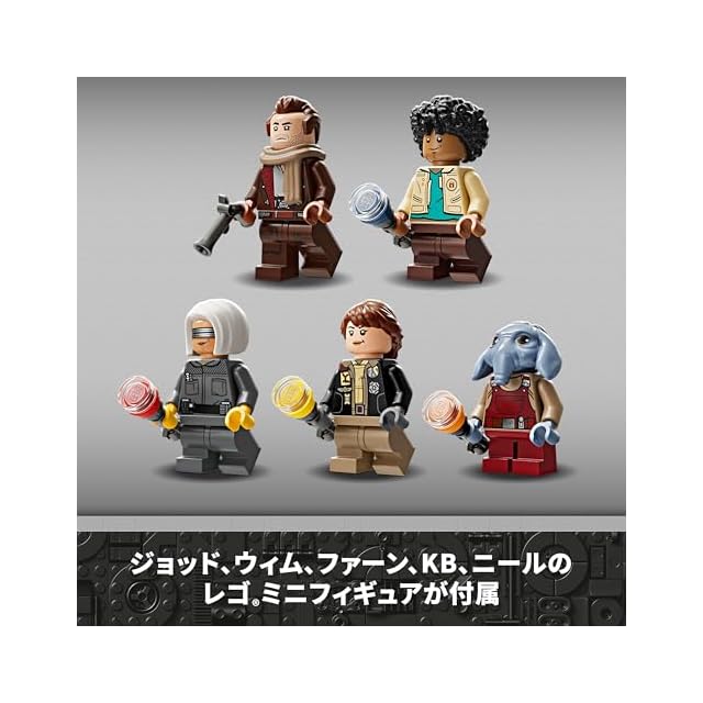 レゴスター・ウォーズキャラクター5体 – ビンテージスタイルのブラスターを携えたジョッドに加え、それぞれが組み立て式フラッシュライトを手にしたウィム、KB、ファーン、ニールのミニフィギュアが付属