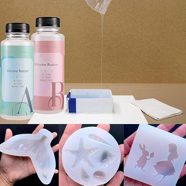 【幅広い用途】金型製作キットには幅広い用途があります。レジン型、キャンドル型、石鹸型、レジン鋳造型、手芸などに使用できます。***当社の型取り用シリコンは、レジン液やテープなどの素材に対して非常に敏感です。 液体の状態で触ると水っぽくなります。ただし、完全に硬化した場合はレジン液の上からでも使用できます。