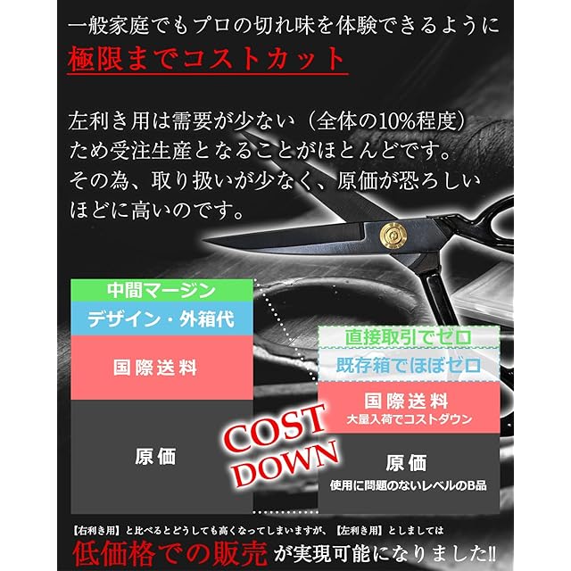 [B品 機能性に問題なし] 左利き用 裁ちばさみ たちばさみ 裁ち鋏 32年の歴史をもつ工場で職人が造った 裁ちバサミ 裁縫ばさみ 布切はさみ プロ仕様 洋裁 手芸 裁縫 布 (左利き用,10寸,26cm)
