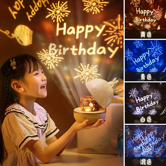 【22種類投影フィルム】最新版家庭用プラネタリウムライトは投影できる絵柄を変えられるフィルムが22種類もあるので、飽きずに利用できそうです。さらに兎の見た目もかわいく、子供でも大人でも大変気に入っております。毎日フィルムを変えて、お部屋中が夢の世界に変わり、誕生日飾り付け、クリスマス飾り、ハロウィン飾り、出産祝い、結婚祝い、新築祝いなどのイベントにも使えます。子供でも大人でも童心に帰れるような楽しみ方ができる。夜寝る時に真っ暗にして使えば天井にだいぶはっきりと綺麗でうつります。家庭用プラネタリウムのフィルムは可愛くて、シーズンのものだけでなく、男の子女の子どちらも楽しめる絵なので汎用性があります。子供ももちろんですが、大人が癒されるインテリア雑貨です。