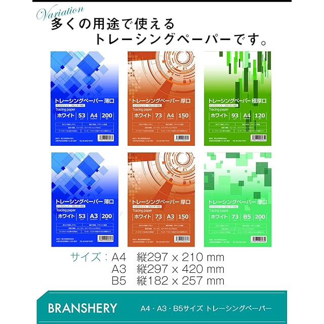 BRANSHERY トレーシングペーパー インクジェット 写し紙 写し絵 製図用 図面 マンガ イラスト紙 トレース紙 手芸用 ブックカバー Tracing paper (A3 73g/㎡ 厚口 150枚) | TREND DESIGN コスメ専門店