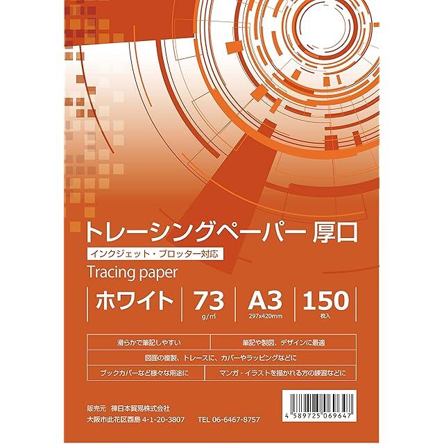 BRANSHERY トレーシングペーパー インクジェット 写し紙 写し絵 製図用 図面 マンガ イラスト紙 トレース紙 手芸用 ブックカバー Tracing paper (A3 73g/㎡ 厚口 150枚)