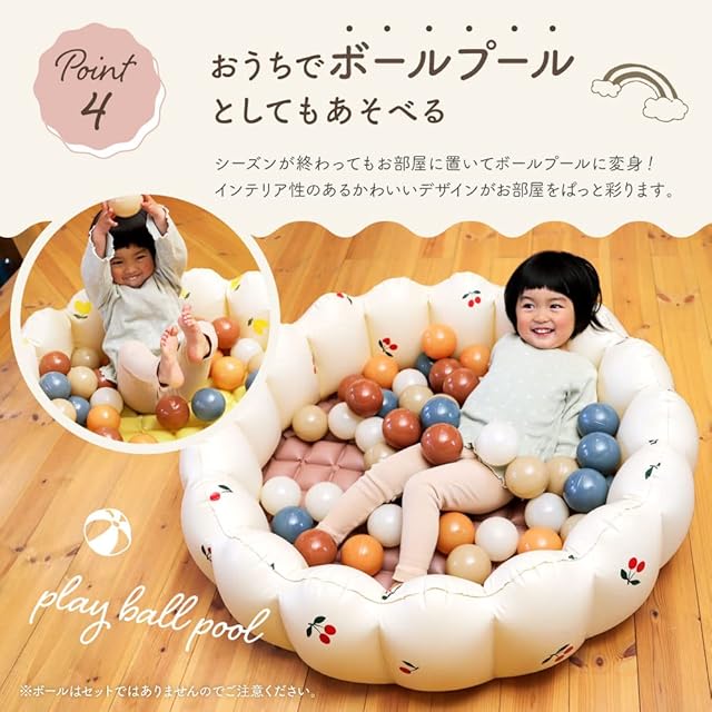 【キュートな2デザイン】大人気のチェリー・レモンのモチーフ柄をちりばめたかわいいらしいデザインで作りました。アウトドアがもっと素敵に、かわいく。【ボールプールとしても】夏が過ぎたオフシーズンでも、お手持ちのボールを入れるだけでボールプールに大変身!インテリアになじむキュートなデザインだから、お部屋の邪魔をせず、ぱっと明るく彩ります♪※ボールは同梱しておりませんので予めご了承ください。