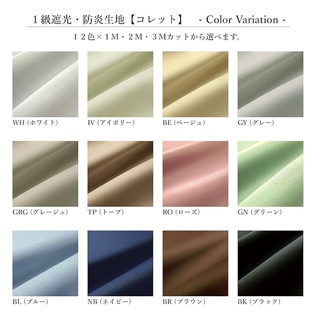 防炎・遮光機能: この生地は防炎加工済みで、遮光1級(99.99%以上)の効果があります。断熱効果(56.4%)と保温効果(33.8%)も期待できます。