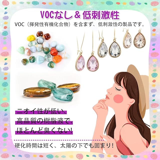 高品質レジン液:あなたがそれを作る時に、ほとんど気泡が全くありません。その匂いは低いです。 どんな環境でも作業できます。大容量 たくさんのものを作れます。保存は簡単、密封するだけ。