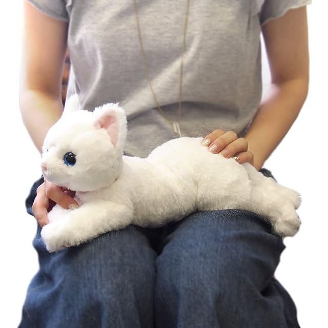 サンレモン ひざ ねこ オッドアイ ホワイト S 13×15×36cm ぬいぐるみ アニマル P-1982