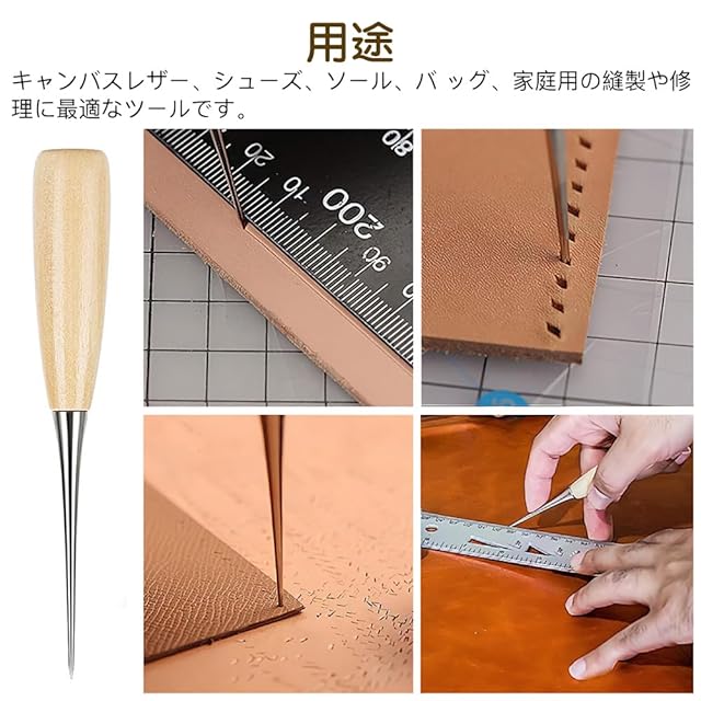 多種類の革縫い針:針先が丈夫で鋭いです。革用の工具セットに様々なサイズと形をしている針先があります。結び目の針と先鋭い針、三角針、カーブ針なども含まれます。