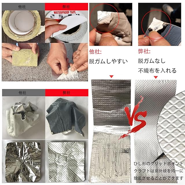 【高純度 防水 耐熱原料】水漏れ専用補修テープ。純粋なブチルゴムでできており、安全で環境に優しく、無毒、無刺激臭。不純な材料や粗悪な材料を使うよりも伸び率が高く、長持ちします。【メーカー】アルミブチルテープ 防水は何にか不具合・初期不良があれば製品を行いますのでご安心してお買い求めください。
