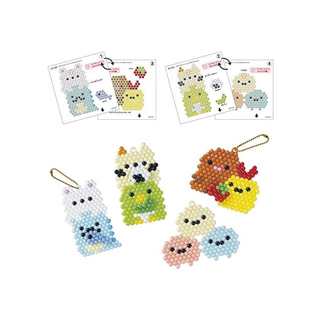 セット内容:ポリゴンビーズ(3色)、イラストシート(4種x2枚)、ボールチェーン(2本)、キーチェーンパーツ(しろx1個、アイボリーx2個、キャラメルブラウンx1個)、取扱説明書(1部)