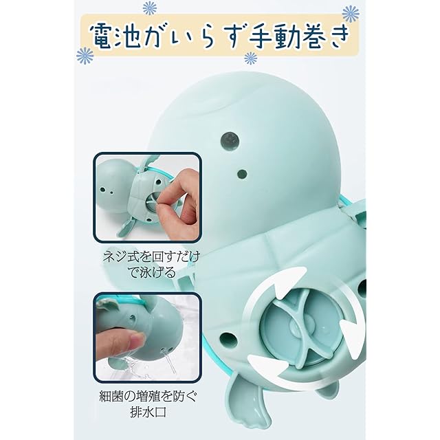 【簡単な遊び方】本体の裏側のネジ式を回すだけで水の上をスイスイ泳ぎます。電池がいらず繰り返し使用可能です。豚さんは噴水でき、子供に遊びながらシャワーでます。