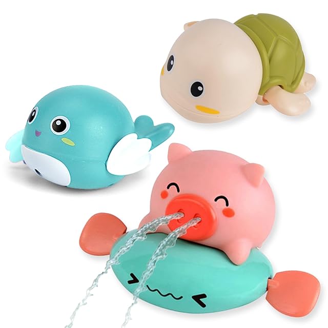 JUYEE お風呂 おもちゃ 赤ちゃん 水遊び おもちゃ 人気ランキング レインボーシャワー 豚 カメ イルカ 誕生日プレゼント 出産祝い(3点セット-色ランダム)