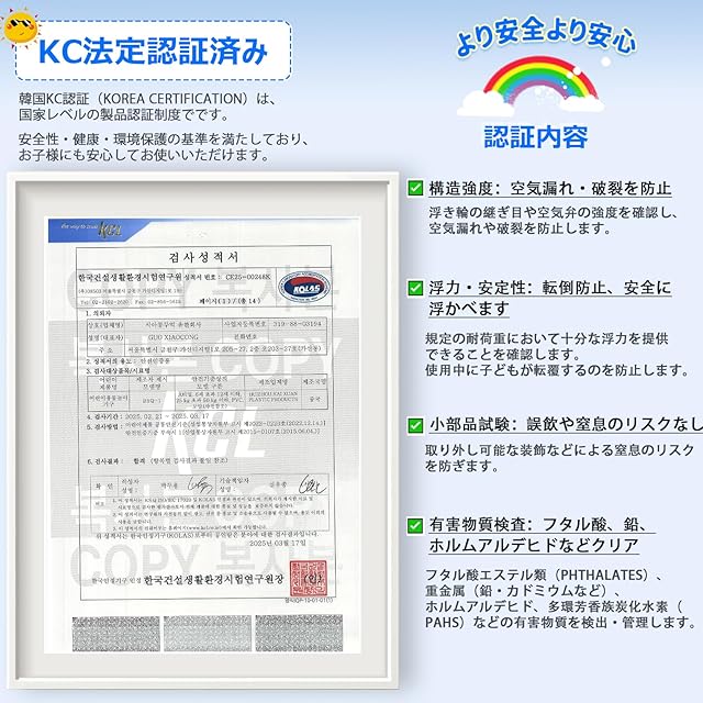 【二重空気袋】本製品は二つの空気袋で2層構造されています、万が一外側の第一層が尖った物に接触して破れた場合でも、第二層のエアバッグが安全を守ります。普通の浮き輪よりも安全性に優れています。空気を入れ口も二つあります、浮き輪に1と2書いてあります、空気入れる時必ず 「1」から入れるようにお願いします。