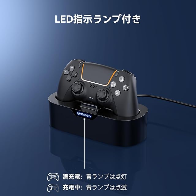 NEWDERY PS5 コントローラー 充電スタンド PS5 コントローラー edge 充電器 収納スタンド 急速充電 周辺機器 アクセサリ USB-Cケーブル付属 LED指示ランプ付き 過充電防止 コンパクト 軽量 ブラック